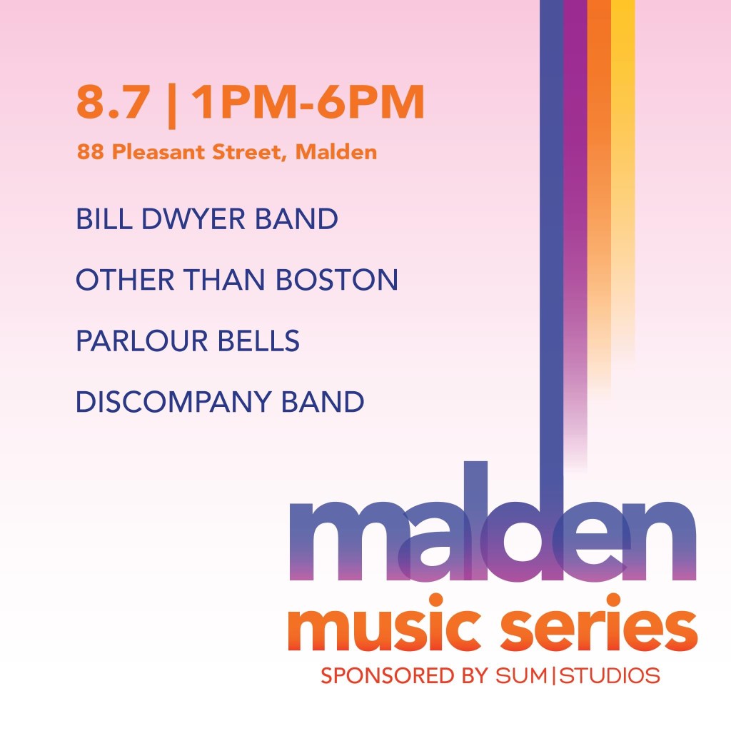 After nearly two years, Parlour Bells performs live for the first time as part of the Malden Music Series on August 7, 2021. The event is outdoors and FREE to the public. 1-6PM, 88 Pleasant Street, Malden. Sponsored by the excellent SUM Studios.