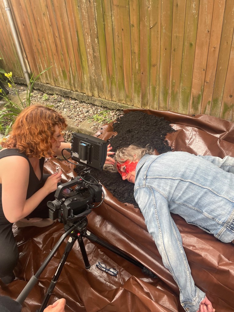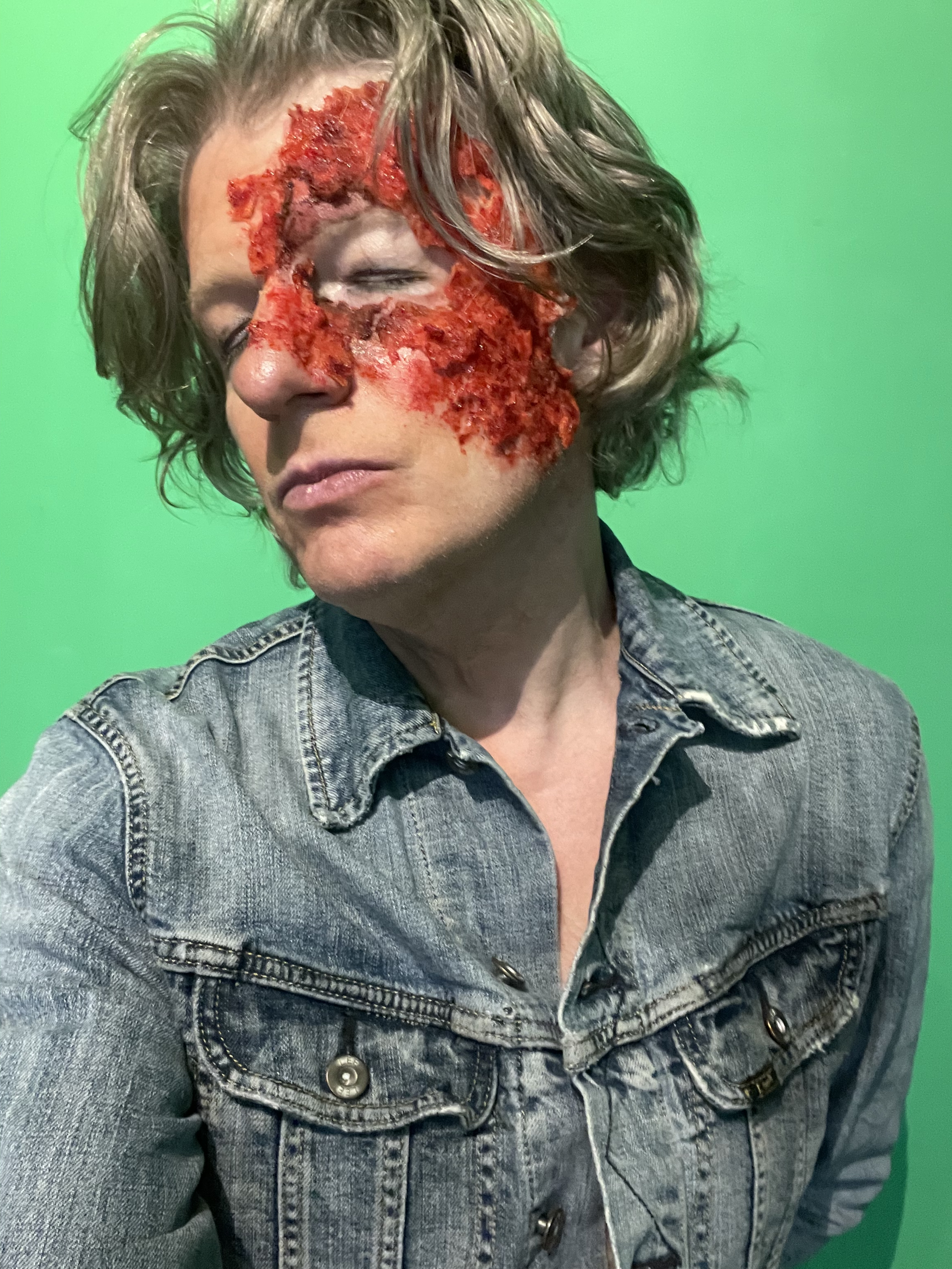 Honey Pie in “Slasher Movie Weather” (2024). Makeup by Tracey Vaughan.